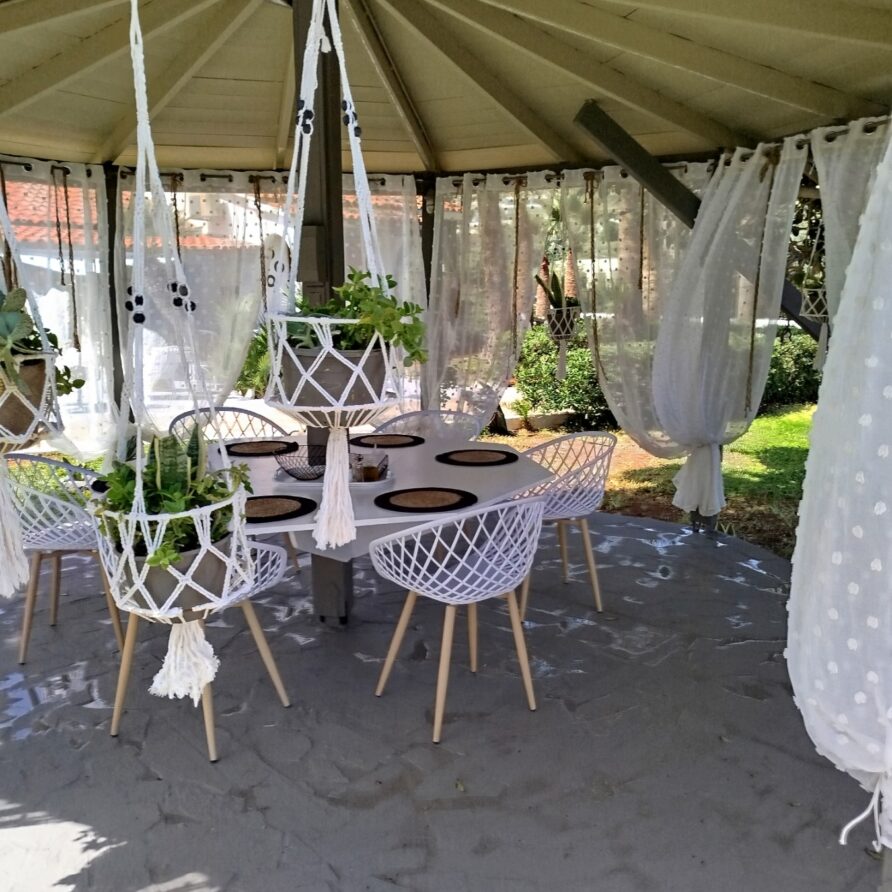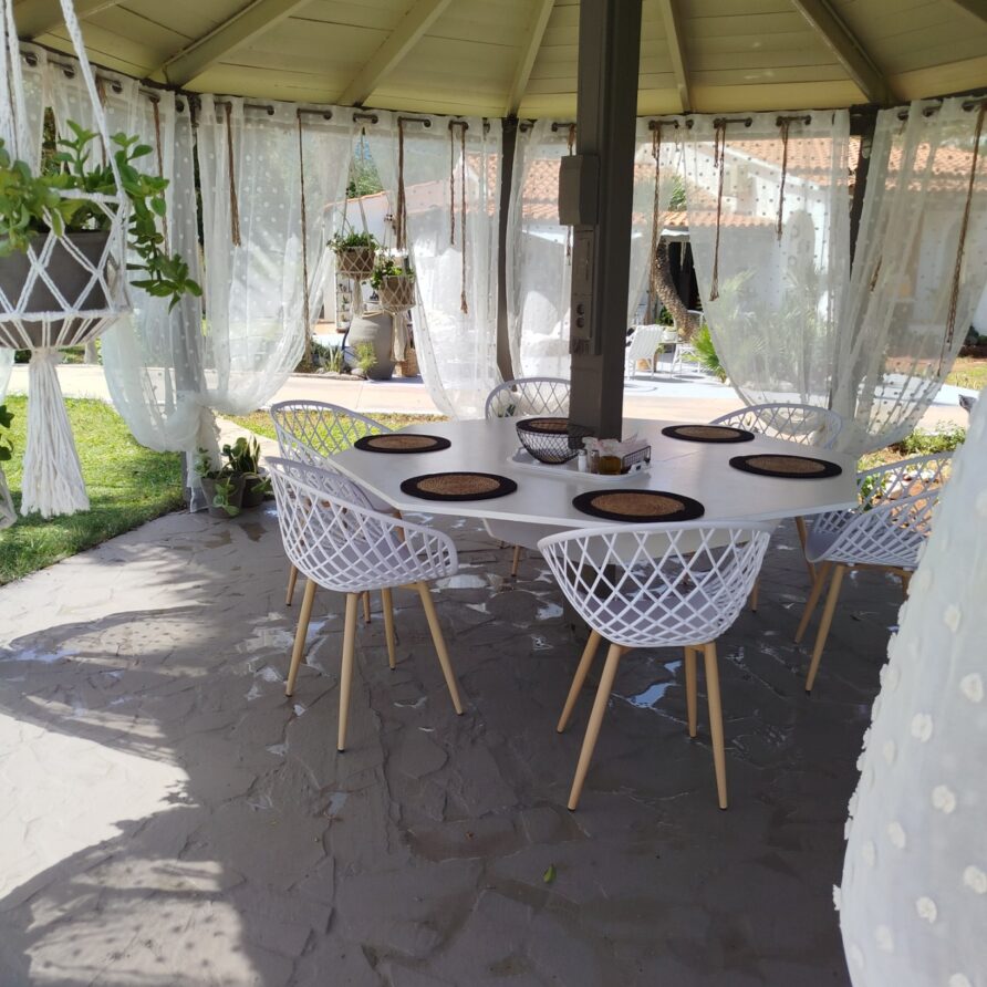 - Amenities: air-conditioning, baby cot, baking sheet, balcony (private), bed linen, body soap, cleaning products, clothes drying rack, clothes storage, coffee maker, cooker, cooking basics, dining table, dishes and cutlery, essentials (towels, bed sheets, soap, toilet paper, and pillows), free parking on premises, free wi-fi, freezer, fridge, garden, hair dryer, Hot tub, hot water, kettle, kitchen, launderette nearby, outdoor dining area, outdoor furniture, shampoo, shower gel, single level home, sun loungers, toaster, TV, washing machine, wine glasses