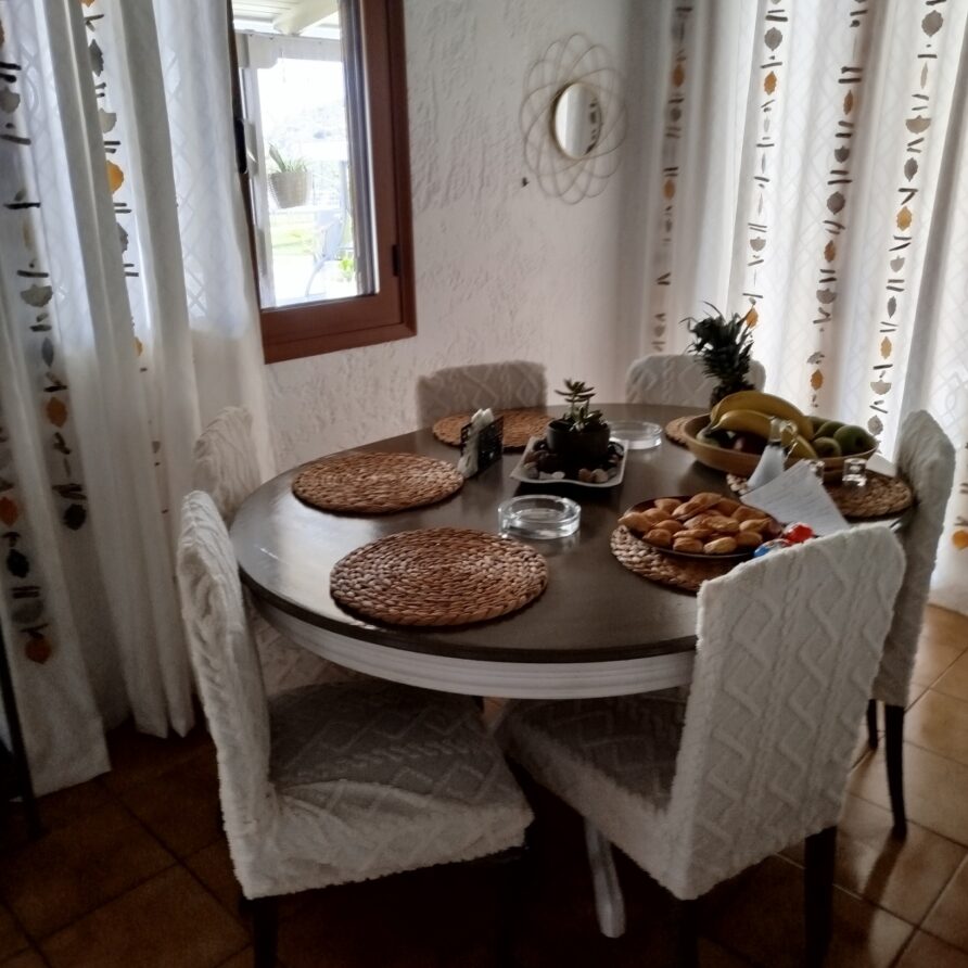 - Amenities: air-conditioning, baby cot, baking sheet, barbecue utensils, bbq grill, bed linen, body soap, cleaning products, clothes drying rack, clothes storage, cooker, cooking basics, dining table, dishes and cutlery, essentials (towels, bed sheets, soap, toilet paper, and pillows), free parking on premises, free wi-fi, freezer, fridge, garden, hair dryer, heating, hot water, iron, kettle, kitchen, outdoor dining area, outdoor furniture, oven, shared swimming pool, single level home, toaster, TV, washing machine, wine glasses