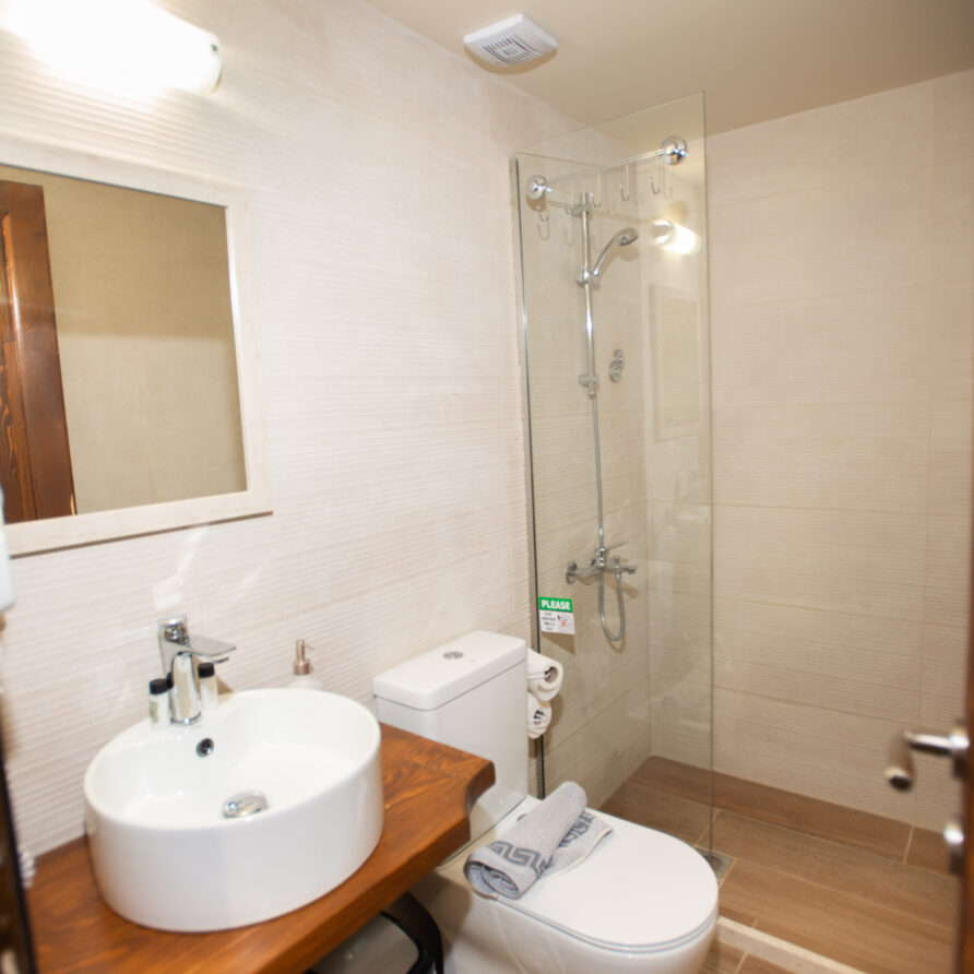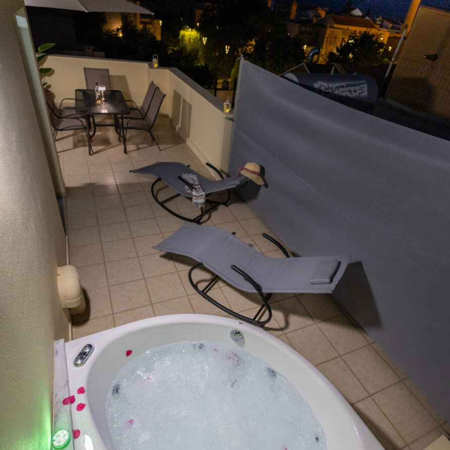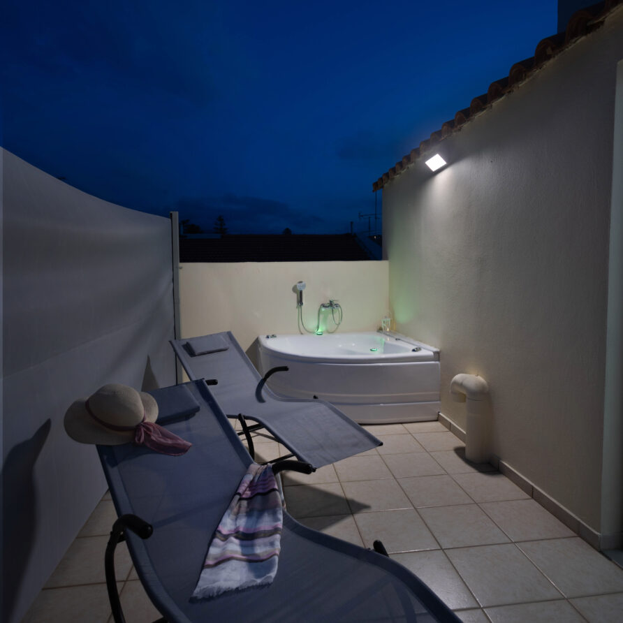- Amenities: air-conditioning, baby cot, balcony (private), bed linen, body soap, cleaning products, clothes drying rack, clothes storage, coffee, coffee maker, cooker, cooking basics, dining table, dishes and cutlery, essentials (towels, bed sheets, soap, toilet paper, and pillows), fire extinguisher, First aid kit, free wi-fi, freezer, fridge, hair dryer, heating, high chair, hot water, iron, jacuzzi, kettle, kitchen, microwave, outdoor dining area, outdoor furniture, oven, private entrance, shampoo, shower gel, TV, washing machine, wine glasses