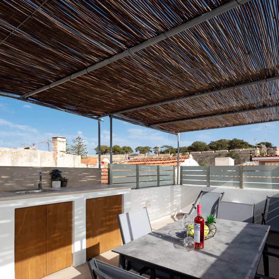 - Amenities: air-conditioning, baby cot, baking sheet, balcony (private), bed linen, body soap, cleaning products, clothes drying rack, clothes storage, coffee, coffee maker, cooker, cooking basics, dining table, dishes and cutlery, essentials (towels, bed sheets, soap, toilet paper, and pillows), First aid kit, free wi-fi, freezer, fridge, hair dryer, heating, hot water, iron, kettle, kitchen, outdoor dining area, outdoor furniture, oven, shampoo, shower gel, sun loungers, terrace, TV, washing machine, wine glasses