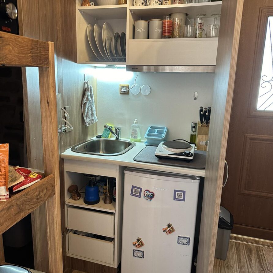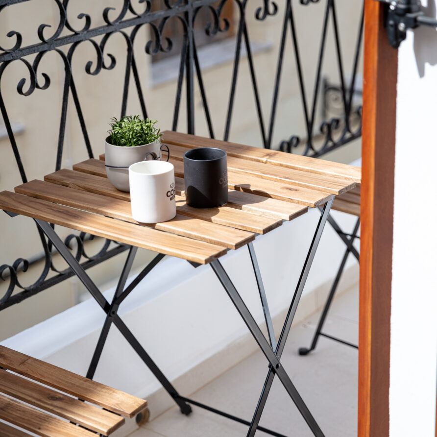 - Amenities: air-conditioning, baby cot, baking sheet, balcony (private), bed linen, body soap, cleaning products, clothes drying rack, clothes storage, coffee, coffee maker, cooker, cooking basics, dining table, dishes and cutlery, essentials (towels, bed sheets, soap, toilet paper, and pillows), First aid kit, free wi-fi, freezer, hair dryer, heating, hot water, iron, kettle, kitchen, mini fridge, outdoor furniture, oven, shampoo, shower gel, smoke alarm, toaster, TV, wine glasses