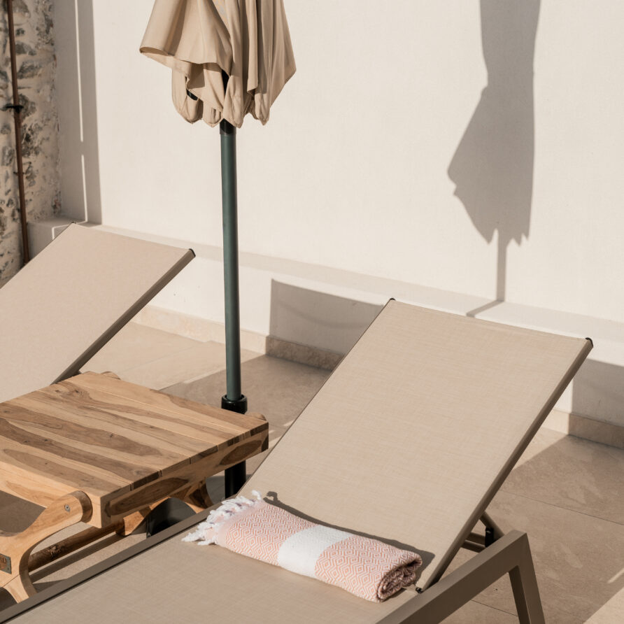 - Amenities: air-conditioning, balcony (private), bath, bed linen, body soap, cleaning products, clothes drying rack, clothes storage, coffee, coffee maker, dining table, dishes and cutlery, essentials (towels, bed sheets, soap, toilet paper, and pillows), free parking on premises, free wi-fi, freezer, garden, hair dryer, heating, hot water, kettle, mini fridge, outdoor furniture, outdoor shower, room-darkening blinds, safe, shampoo, shared swimming pool, shower gel, sun loungers, toaster, wine glasses