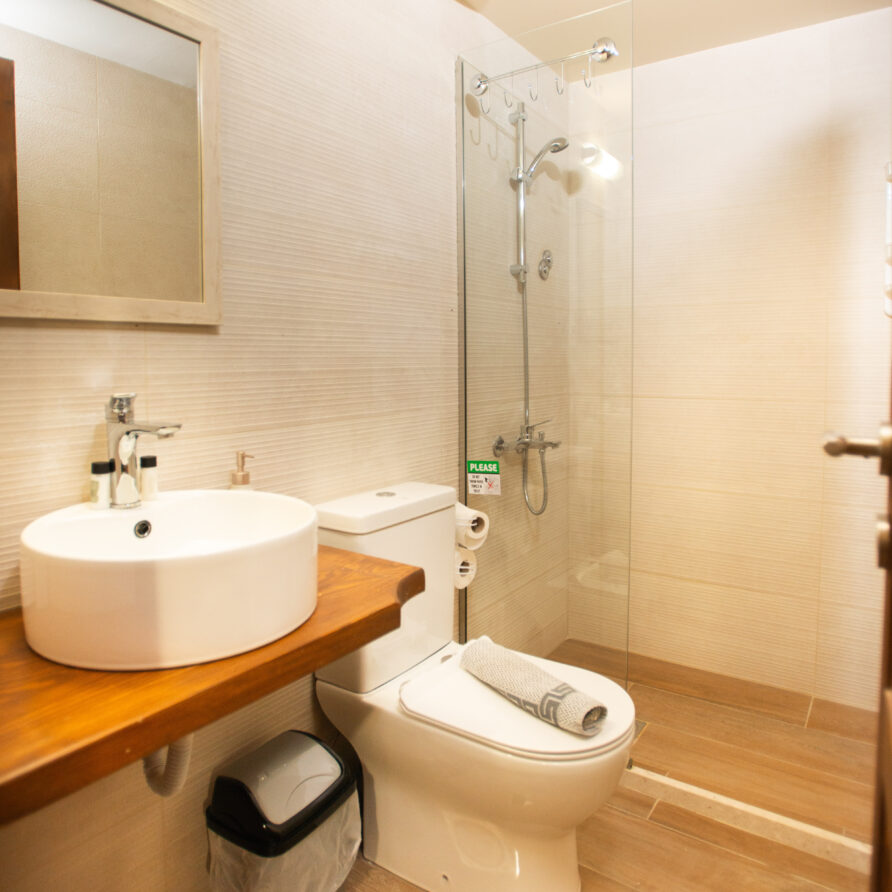- Amenities: air-conditioning, baby cot, baking sheet, balcony (private), bed linen, body soap, cleaning products, clothes drying rack, clothes storage, coffee, coffee maker, cooker, cooking basics, dining table, dishes and cutlery, essentials (towels, bed sheets, soap, toilet paper, and pillows), First aid kit, free wi-fi, freezer, heating, hot water, iron, kettle, mini fridge, outdoor furniture, oven, shampoo, shower gel, smoke alarm, toaster, TV, wine glasses